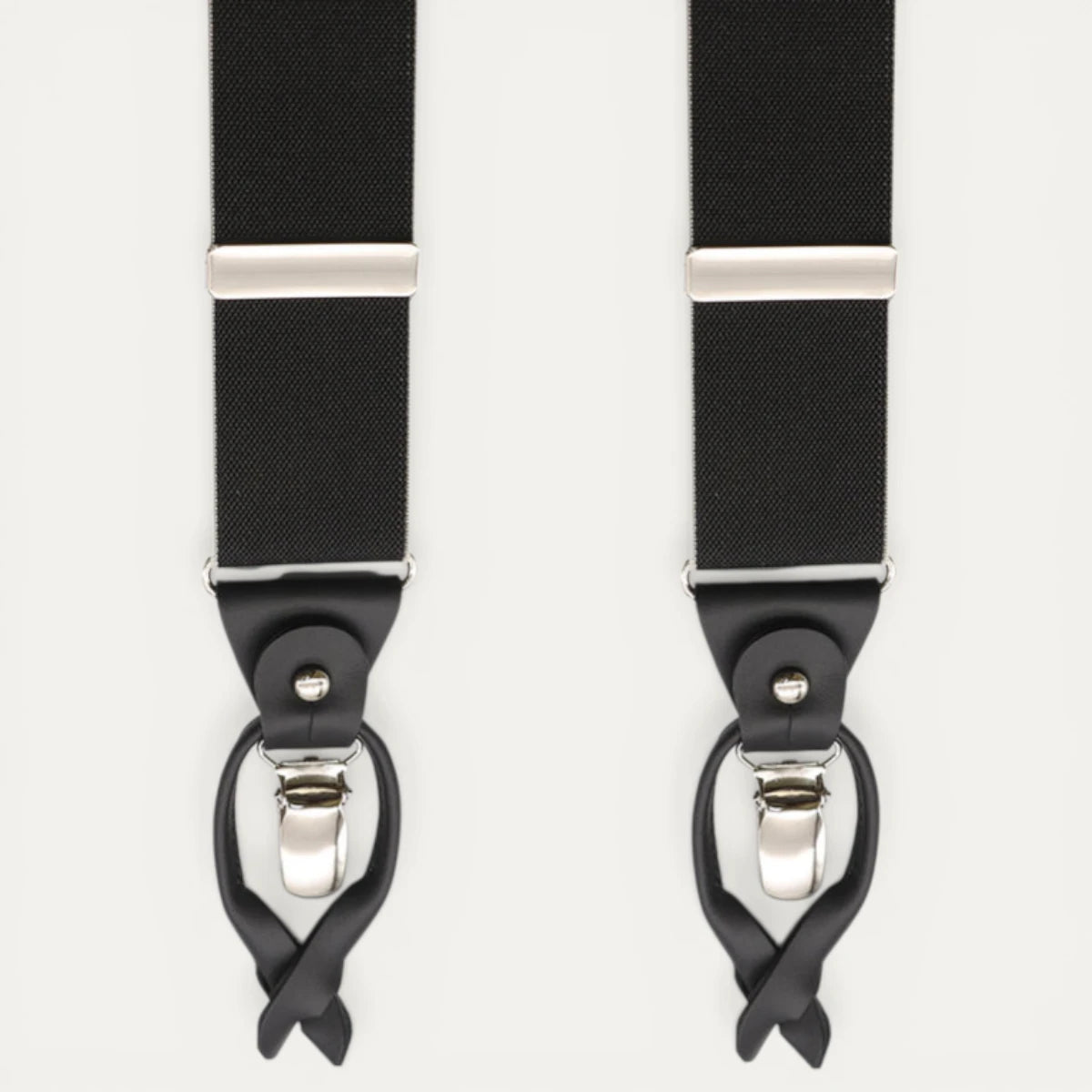 El sistema de sujeción mediante botones ofrece una estética más limpia y sofisticada que los tirantes de pinza, siendo la elección preferida para trajes y eventos especiales.