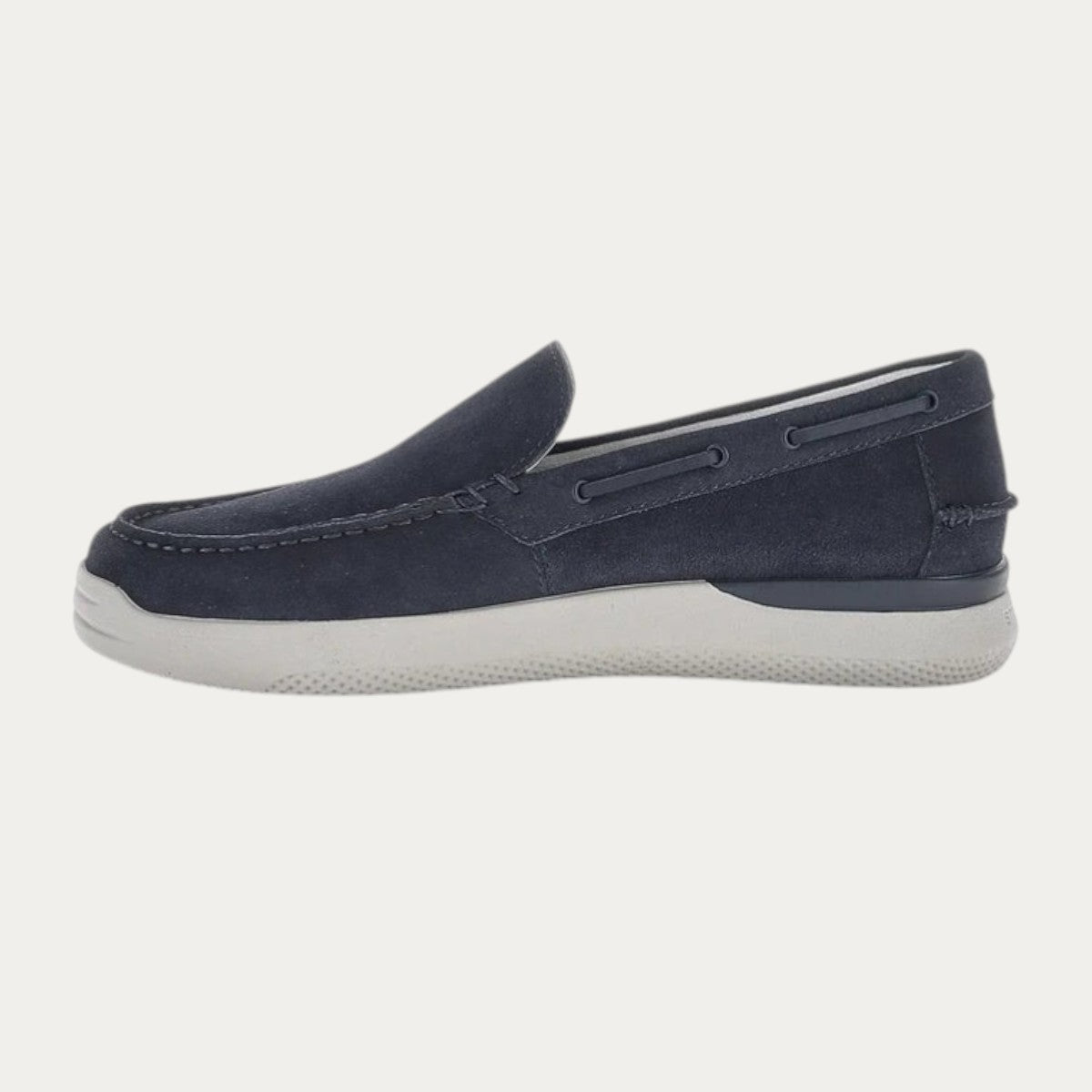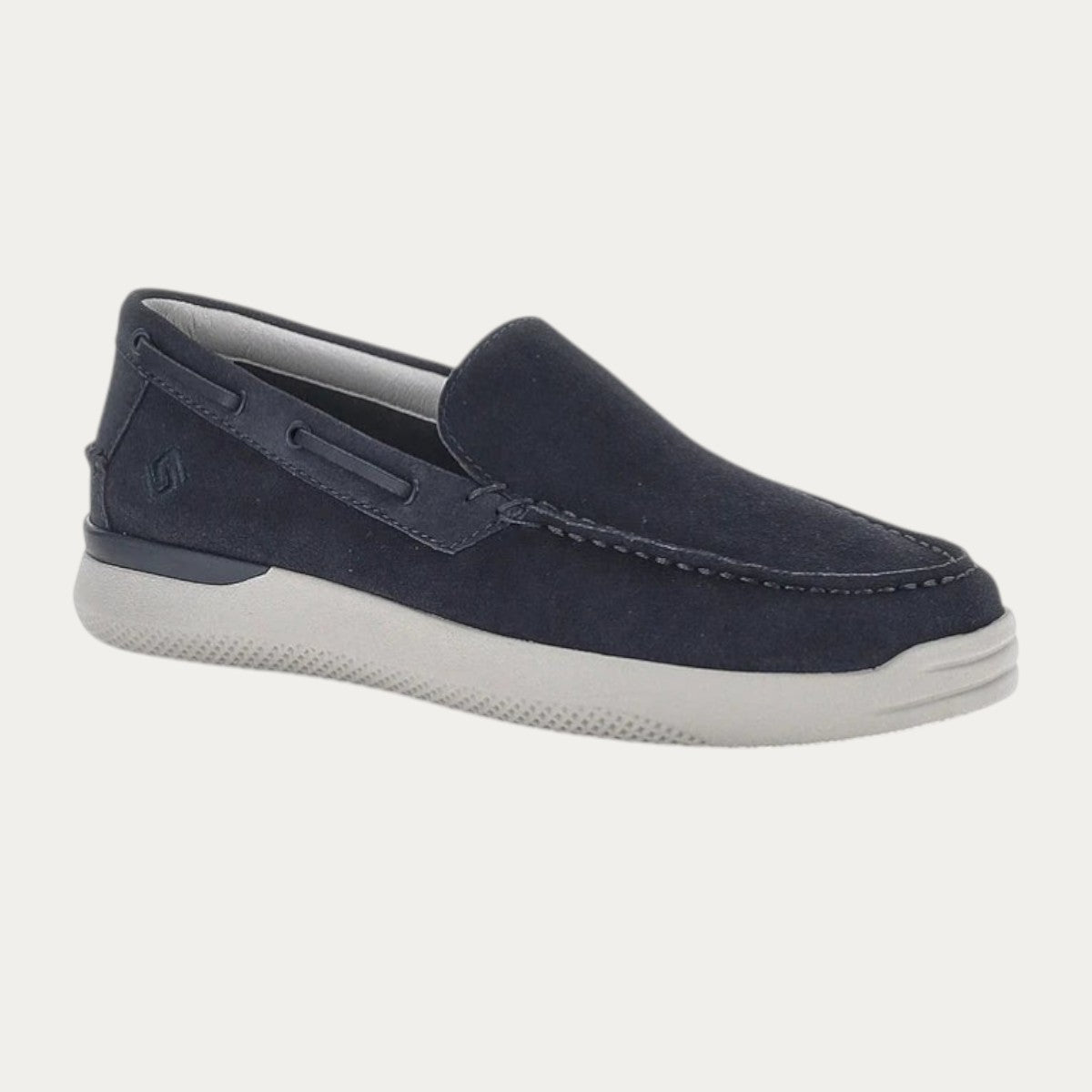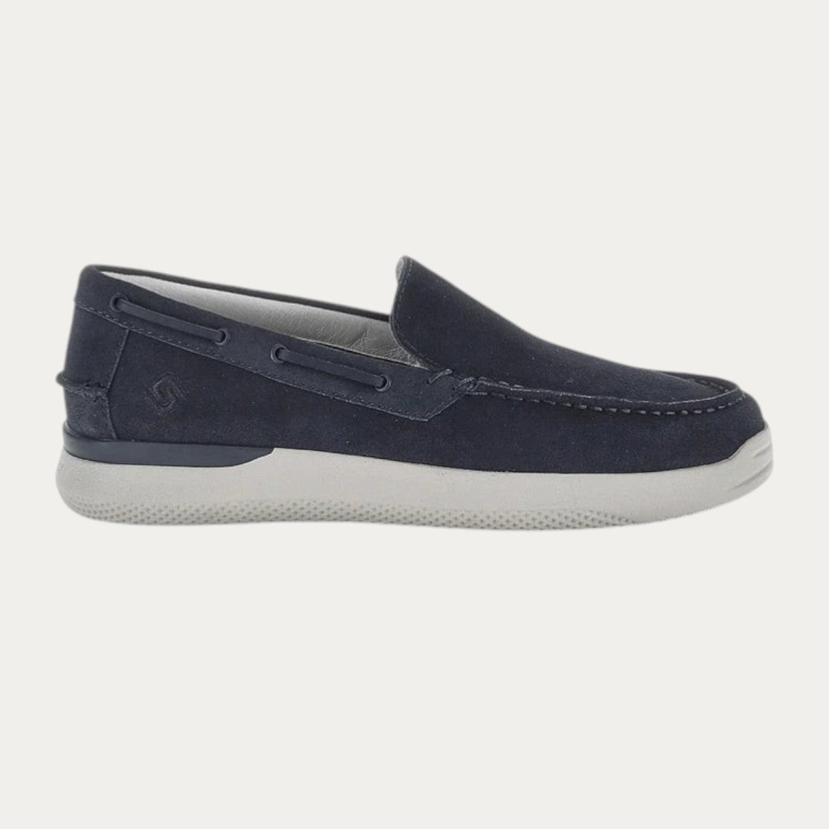 Men's boat moccasin in blue suede with a wide fit. A comfortable, summer-ready style with an ultra-soft upper and a lightweight, flexible sole. Featuring Blusoft Memory® technology, the shoe is equipped with a special insole with a memory foam insert in the heel area that absorbs impact while walking and is made from a special open-cell material to ensure excellent breathability. EVA outsole, heel height (cm): 3.5.