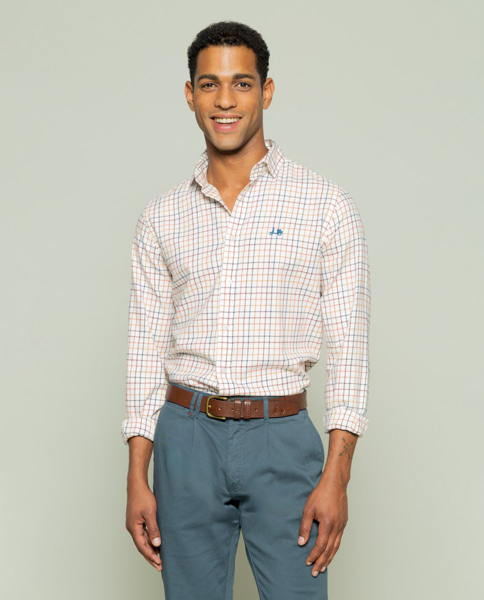 Camisa cruda cuadro viyela.