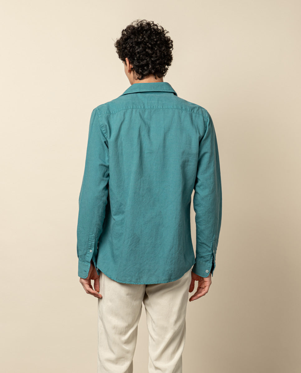 • Confeccionada en 56% lino, 44% algodón • Logo bordado • Tinte garment dyed • Cuello italiano • Corte regular fit • Diseñada en España