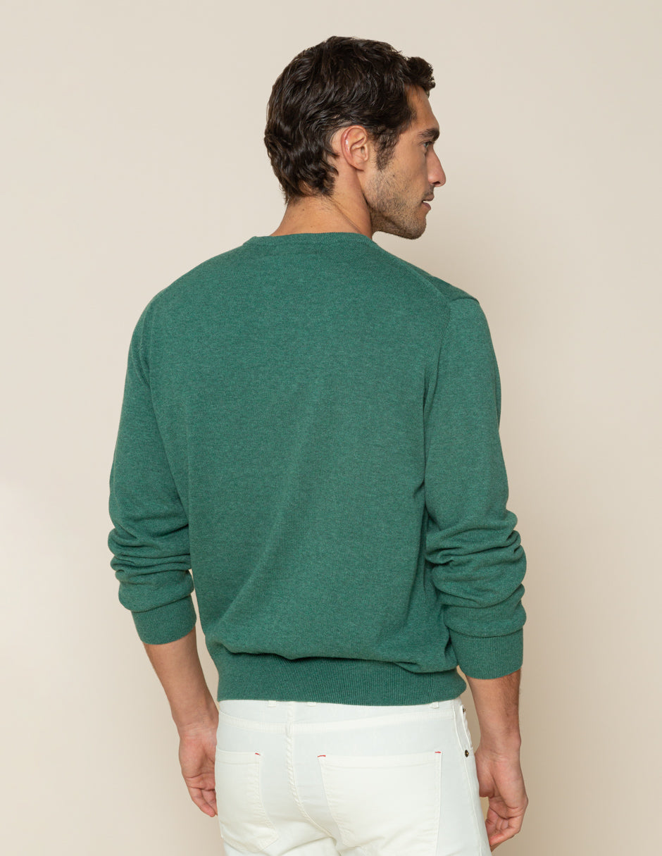 Jersey en verde grisáceo. Confeccionado en tejido de algodón. Detalle de moto bordada. Cuello redondo y manga larga. Punto de canalé en puño